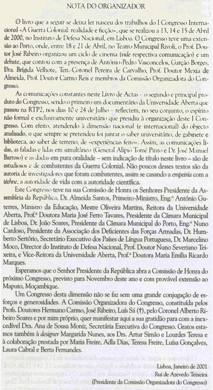 Guerra Colonial" (organizado por Rui de Azevedo Teixeira