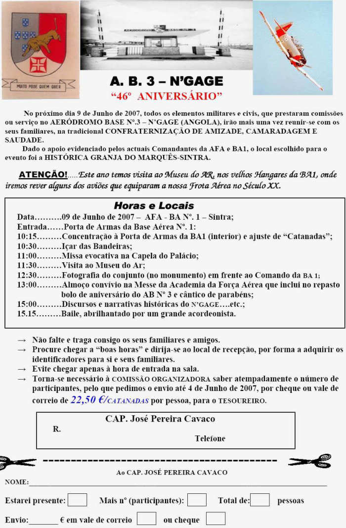 46.º Aniversário Aeródromo Base 3 N'Gage (Angola)