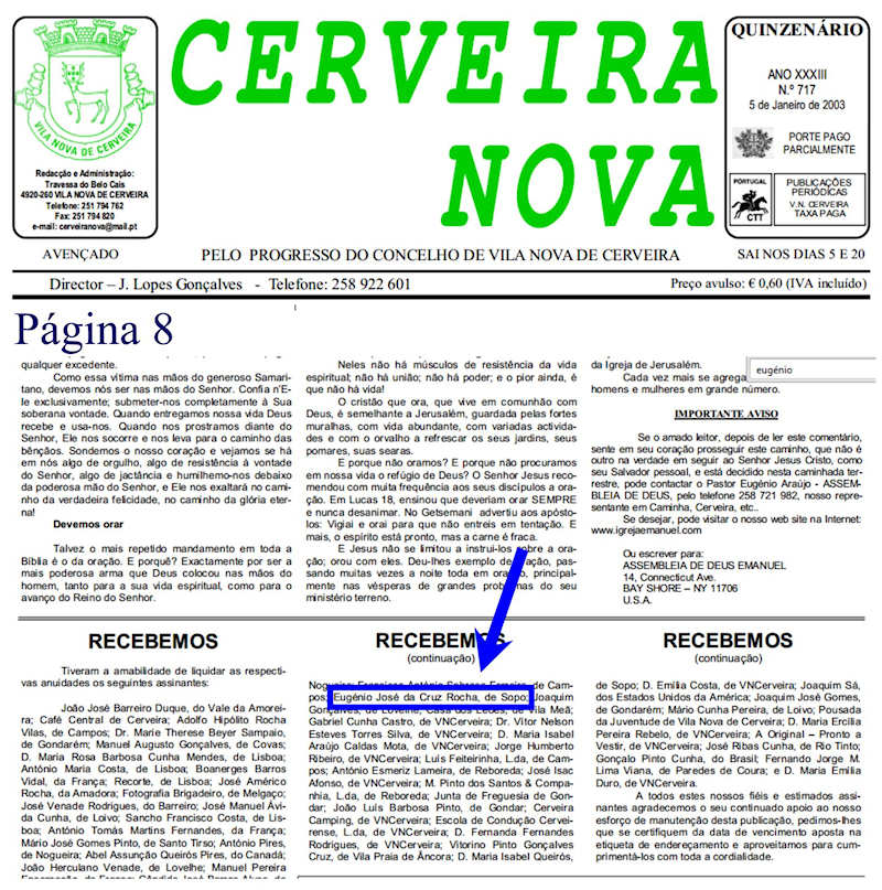 No jornal "Cerveira Nova", nas edições