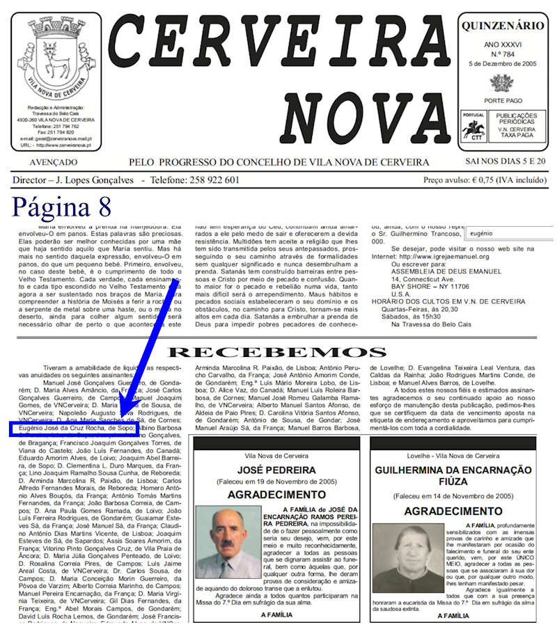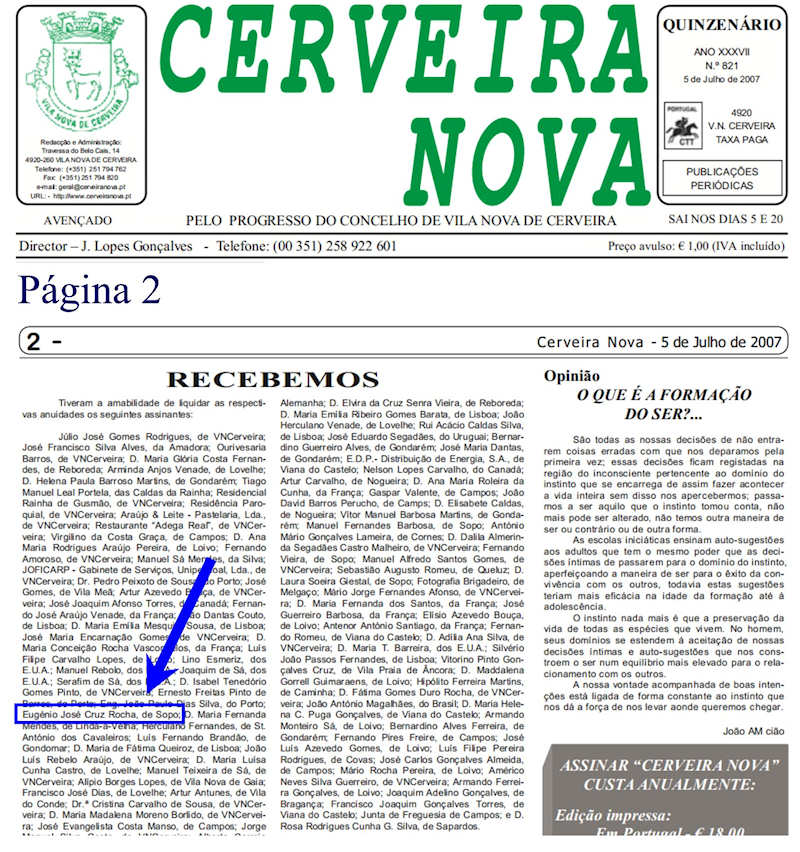 05Jul2007, está referenciado o nome Eugénio José da Cruz