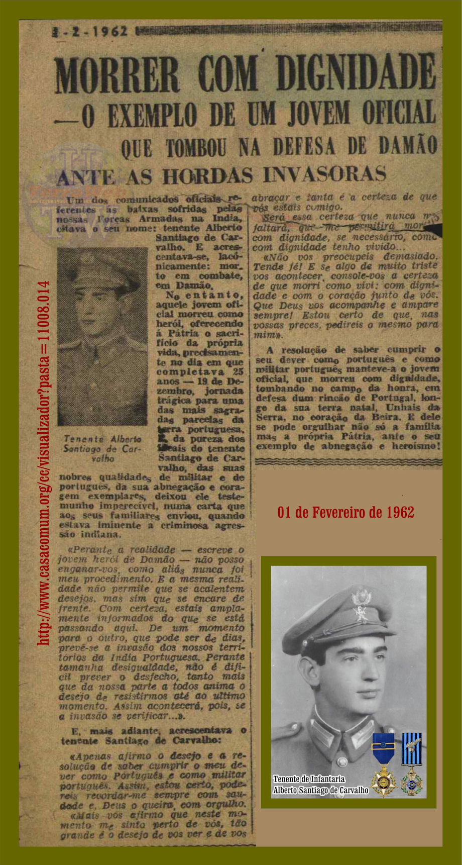 Recorte datado de 1 de Fevereiro de 1962