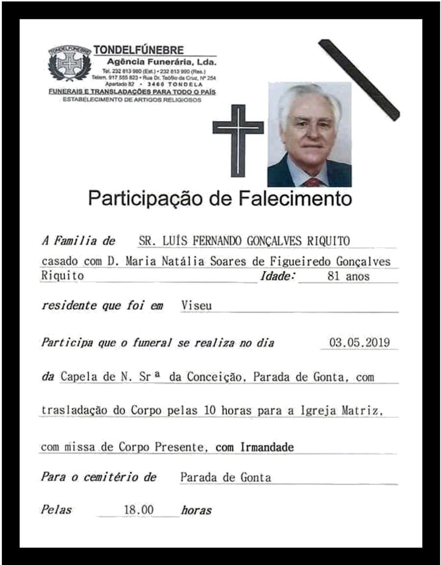 Faleceu, no dia 2 de Maio de 2019, o veterano