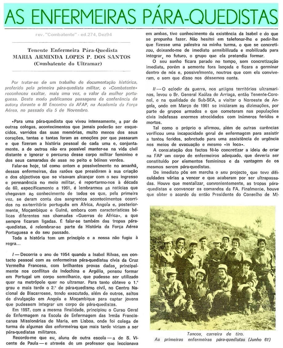 Pára-Quedista Maria Arminda Lopes Pereira dos Santos,