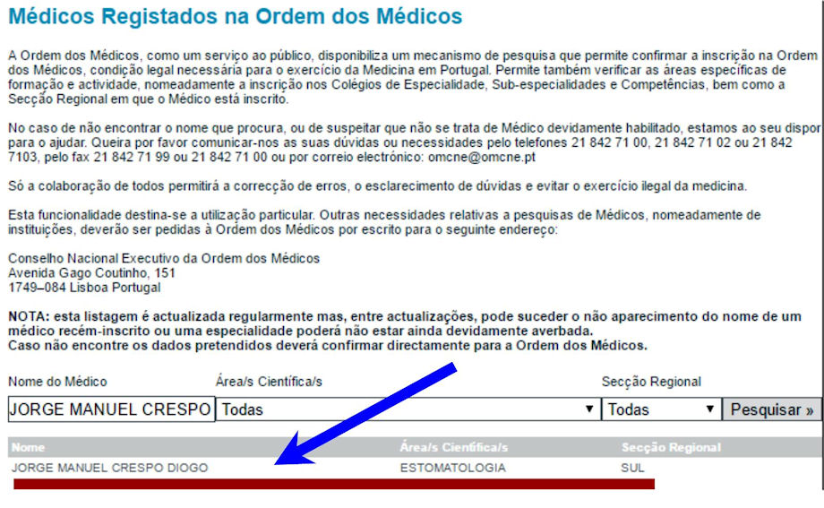 Ordem dos Médicos - veja a imagem que se expõe a seguir - e pertence à