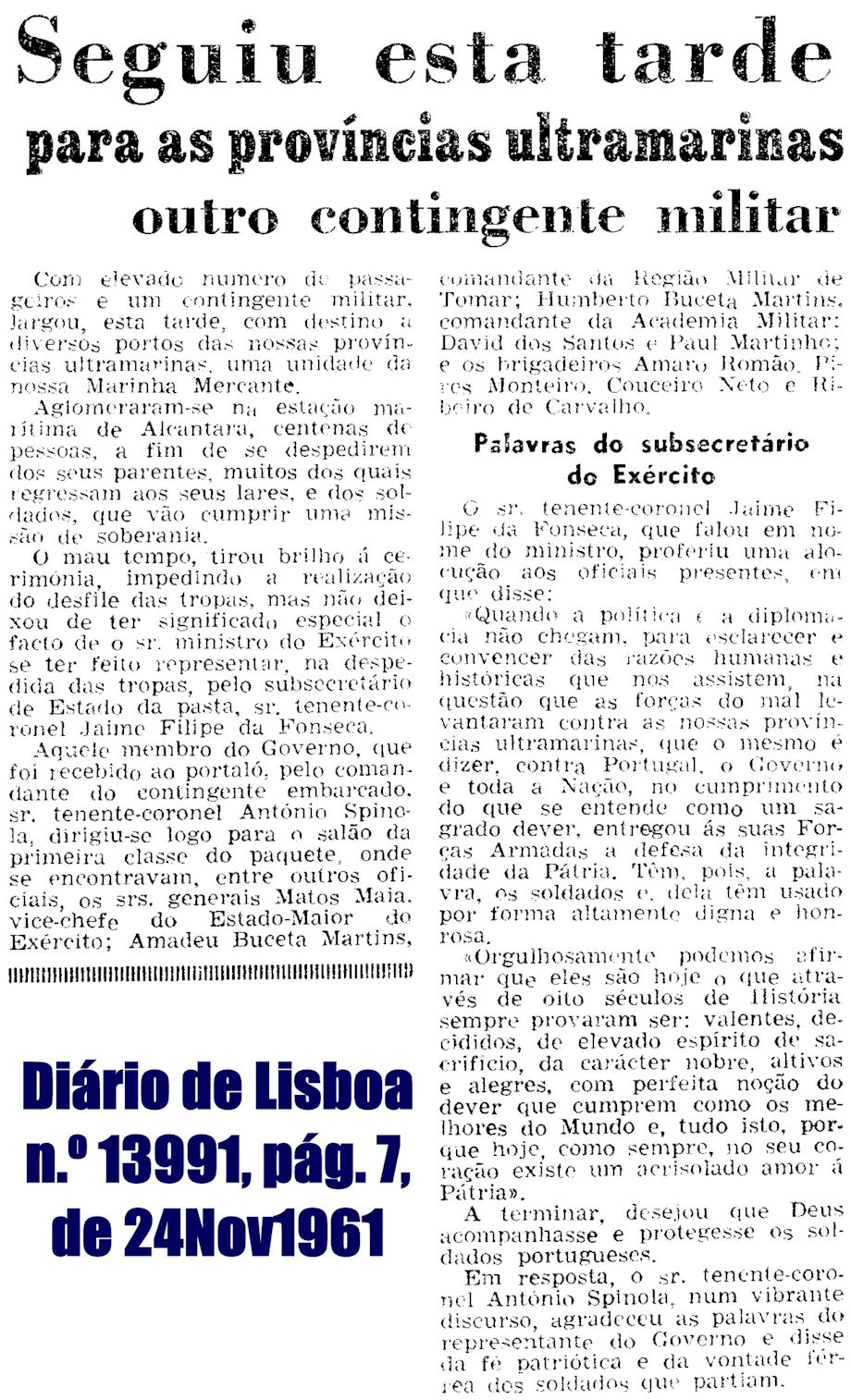 Cavalaria 345, no dia 24 de Novembro de 1961