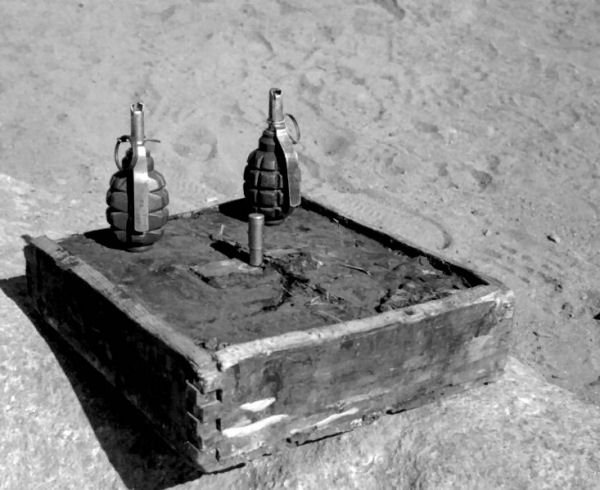 Mina levantada, estava armadilhada com duas granadas