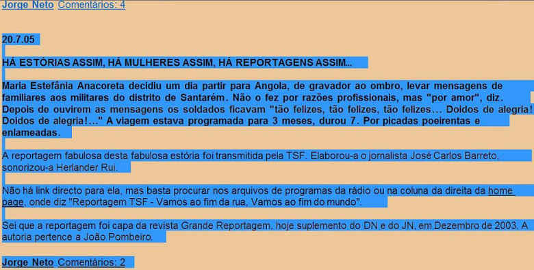 em Angola, pelo qual tantos lhe ficaram a dever emoções