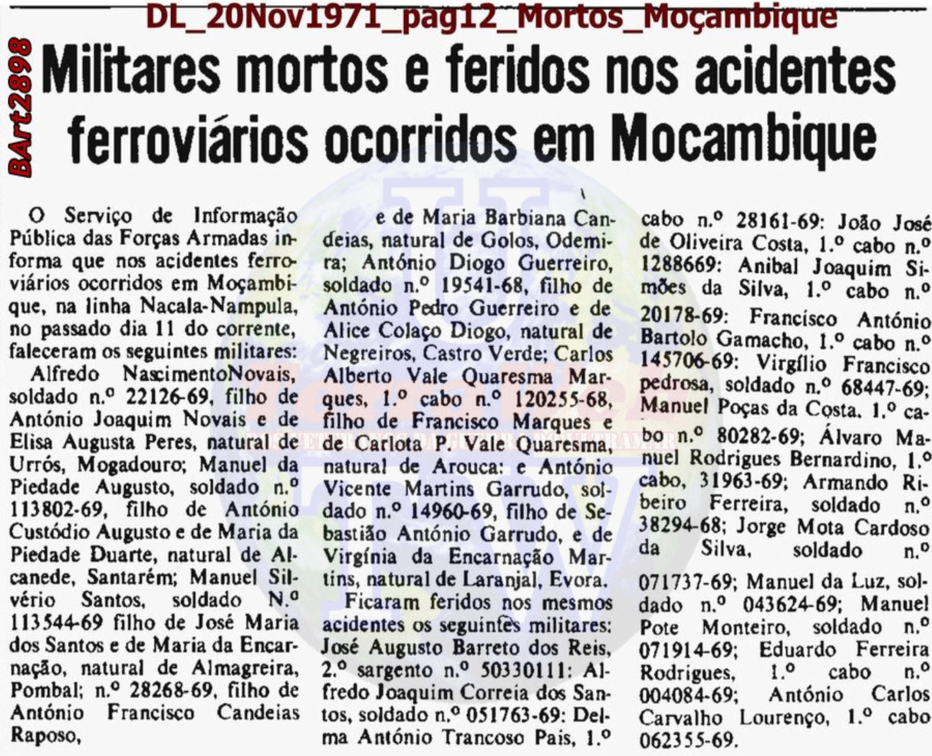 Nampula e Nacala (Moçambique), ocorrido no dia 11Nov1971»