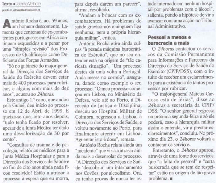 in Jornal "24 horas" de 19 de Julho de 2007