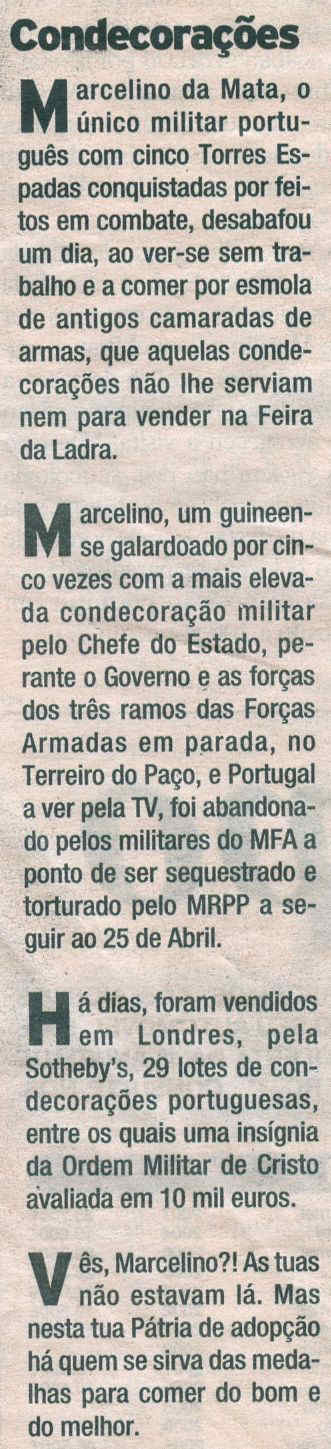 Enviado por Ilídio Costa in: Jornal "Correio da Manhã", de 11JUL2008 na rubrica "25.ª hora", por Joaquim Letria "Condecorações"