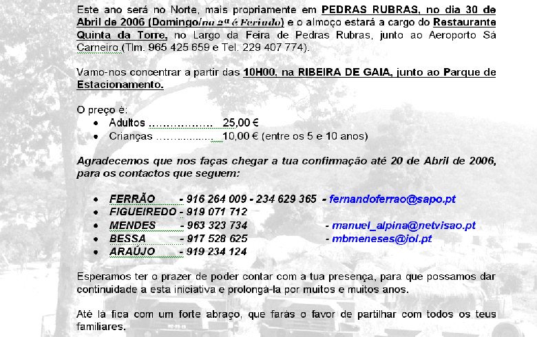 EVENTO: (enviado por Fernando Ferrão em 5 de Janeiro de