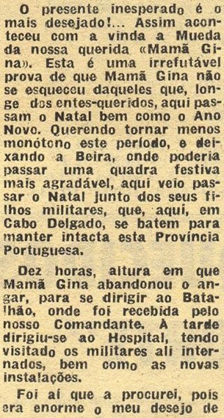 (sobre a visita de "Mamã Gina" a Mueda