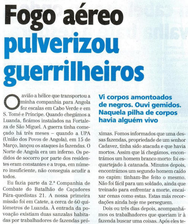 "A Minha Guerra", in revista "Domingo" do jornal Correio da Manhã